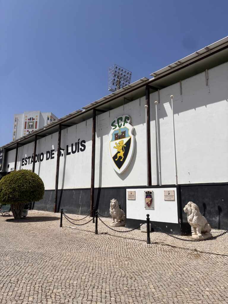 Ein kurzer Abriss zur Geschichte: Das Stadion wurde 1922 von Manuel Santo in Auftrag gegeben, einem Rückkehrer aus den USA. Entsprechend hieß es zuerst „Santo Stadion“ – eines der ersten in Portugal, das spezifisch für den Fußball errichtet wurde. Die Einweihung fand am 1. Dezember 1923 mit einem Spiel zwischen den wichtigsten Teams der Stadt statt: Sporting Clube Farense und Sport Lisboa e Faro.